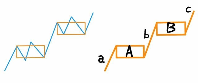 【缠论走势类型】 缠论——走势类型 看题目是不是很诱人? 别着急,我们先处理一下上篇的问题 再来开始今天的内容 上节课讲中枢的时候 有很多同质提出了疑问 老师啊~你讲的中枢和我之前学的不一样啊! 是这样的,这里回答一下 我说的方法是取中枢内所有重叠部分 而在原著中 中枢是取前三段的高中最低 低中最高作为中枢的区间 后面的只属于中枢的延伸 官方是这样定义的 取中枢中前三跟线段作为参考来画中枢的 我说的这种方法,是后期人们改进的 这两个方法之间只有这一点不同 我说的这种方法会更清楚地看清能量的变化 以及归纳更低的买卖点 但始终是剑走偏锋,而且对初学的人来说 不利于区分中枢的级别 所以我决定,以后用官方画法来画中枢 同质们也改改思路。 等大家对缠论深入理解后 再自行决定如何选择划分吧 既然又说到了中枢 索性就以向上中枢为例再多补充一下 上节课讲,一个中枢至少要看5根线段 因为一个完整的中枢是由3部分组成的 一个进入段、一个中枢、一个走出段 那问题来了,一个正在进行的中枢 如何确定他走完了,而不是继续延续? 很简单,就是走出段走出中枢后 又出现一个线段,没有回到中枢内 那么这个中枢就确认完成了 而这个点就是后面会讲的第三类买卖点 好了,说多了 直接进入这节课要讲的内容 走势类型 这个可以说是真正大佬级别了 中枢都是走势类型的一部分 可以这么说,打开k线图 里面全是走势 学会了看走势 就能知道该股目前处于什么形态 将来可能会走出生么形势 从而进入到更高的一个分析层次 (下堂课就讲) 走势也是分类型的,一共两种 盘整型和趋势型,它们的区别在于 盘整型是只有一个中枢的完整走势类型 而趋势型则是有至少两个同级别 同方向的中枢组建的完整走势类型 不要以为出现盘整型就意味着有横方向了 在缠论里就没有横方向,只有上下! 所以盘整走势也分两种 叫上升盘整走势和下降盘整走势 那么趋势走势类型自然也就分为 上升趋势和下降趋势了 趋势走势类型必须是由至少两个同方向 同级别的中枢构筑的 而且两个中枢之间不能有重合的部位 如果出现重合,就变成一个中枢了 这叫做中枢的扩张 在实际操作中我们往往会碰见这样的走势 如果出现了这样的走势 是不能称之为上升趋势的 你可以把它看作一个上升趋势 和一个下降盘整,或者未走完的下降趋势 盘整走势有的时候也会出现这样的形态 以上升盘整为例,原理还是多空双方博弈 你说空方不能老输吧?也要有硬气的时候 当空方获胜的时候就会出现这样的现象 但这不符合中枢的定义 所以我们就要把它分开来看 放在K线图上就是这样 同方向讲完了就要讲同级别 这个很重要,但其实也很简单 就像拳击比赛中 重量级和羽量级选手没法比一样 拳头都不一样大,怎么打? 那中枢怎么看级别,总不能称体重吧 最简单的就是肉眼测量大小 两个体型差不多的人,体重也应该差不多 或者通过相同组件构成 像两个笔中枢 如果笔数差不多那就是同级别 注意!笔中枢和线段中枢肯定不在一个级别 只要大小差异很大的两个中枢 就没法组成一个走势 知道如何构建一个走势了吗? 在缠论中我们还给他们起了名字 一个趋势中最初的进入段叫a a后面的中枢就叫做A A的走出段就叫做b 以此类推,后面还有B、c、C、d....... 盘整走势自然就三个字母了... 绝大多数情况下一个趋势到c就差不多了 就不建议追高了,因为它随时可能会下跌 很少有C、d,这个通过背驰也能判断出来 (背驰后面说) 那么知道了这些,你怎么用呢? 我们举个例子 我们看一下视源股份 从日线图中你能看到目前处于什么阶段吗 如果按照正常来说的话 这段调整大约还要走多久 接下来还有多少的上涨空间 同样的问题 再来看下金卡智能 是不是感觉自己可以预知未来了? 不要着急 这些都是比较明显的 但大部分股票不会给你这么明显的走势 像这个.... 难度在于中枢的级别不同 在大小级别同时出现的时候,以大级别为主 比如图中走势刚开始走得好好的 要开始形成B了 走到B时发现中枢级别变大 这个时候原来a、A、b就变成了 大走势中的a 原来的那波走势就变成 大级别a里的上升盘整走势 原来的B也就变成了大级别的A 将来还会出现同级别的b、B、c 这段趋势类型才算走完 或者出现于A同级别的b后完成走势 就变成了这段的上升盘整走势 所以,看似股价千变万化 其实中就离不开这两个走势类型 而且也都会以这两种走势类型完结 这也就是缠论中的走势必完美 这里再以贵州茅台最近的走势举个例子 虽说是五分钟图,但也能说明问题 我们以6月10日的低点作为起点 股价从825.47开始上升 后形成中枢先后形成了A、B两个中枢 如果B中枢完结,那么代表在出个c就结束走势了 可没曾想B扩张了,那么局势也就变成了这样 也就意味着将来还会出现b、B、c, 那么对于目前处于A来说,还是可以参与的 结了个果,又扩张了... 这意味着什么呢? 意味着还会有同样大的级别出现,才会完结走势 那这个高度是相当可观的 直到同级别的B出现,基本就可以认定目前趋势了 c出完,走势就走完了 而这个趋势,我们放在日线图上 就非常明显了 通过这个例子,我们可以客观地知道 走势的构成,以及走势是有级别的,更重要的是 他还会生长,由小级别生长成大级别 认清这些,这个走势的基本内容,就算完成了 希望通过走